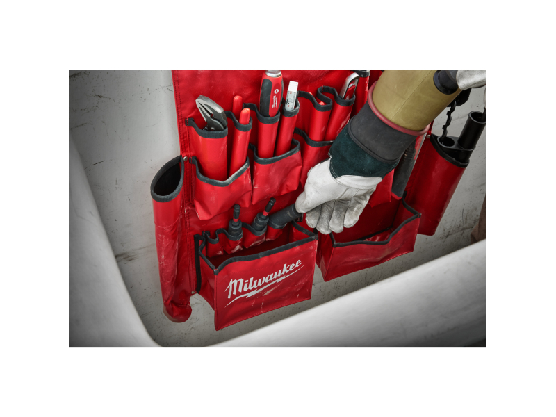 MILWAUKEE Kapsa na nářadí pro výškové pracovníky je navržena pro profesionály, kteří potřebují snadný přístup k nářadí a jeho bezpečné uložení i v náročných pracovních podmínkách. Provedení z odolného vinylového materiálu zajišťuje dlouhou životnost i při každodenním používání.