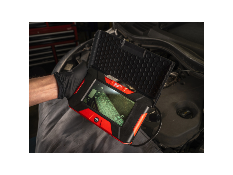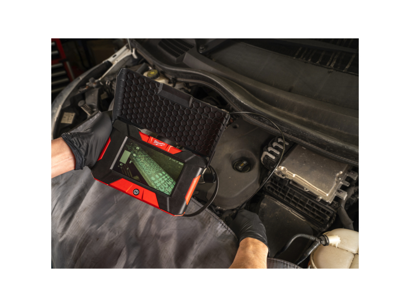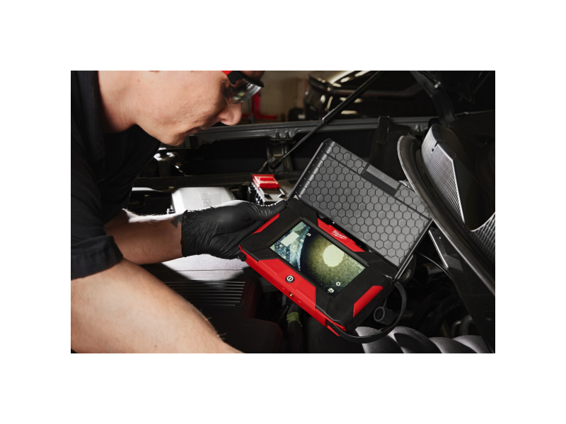 - Přední a boční kamera zaručuje identifikaci vlásčitých trhlin a dalších problémů na motoru a dalších částech vozidla