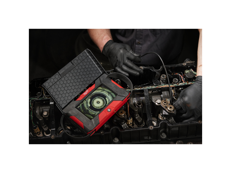 - 5,0 mm hlava kamery umožňuje skvělý přístup do úzkých míst, jako jsou otvory pro zapalovací svíčky, otvory pro vstřikovače paliva a válce