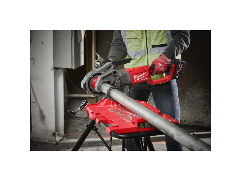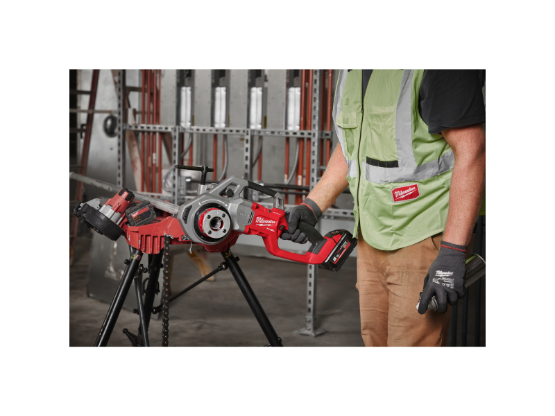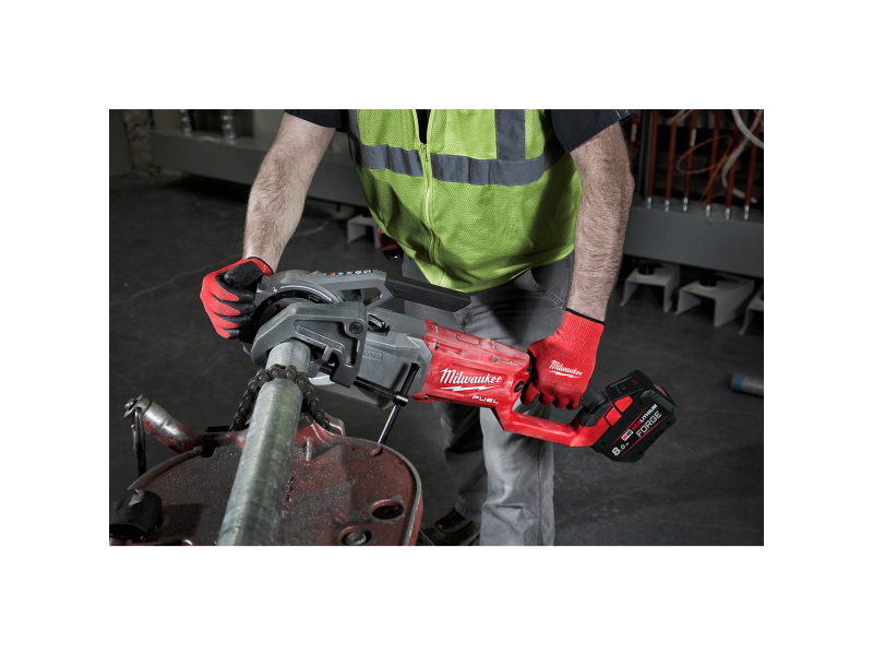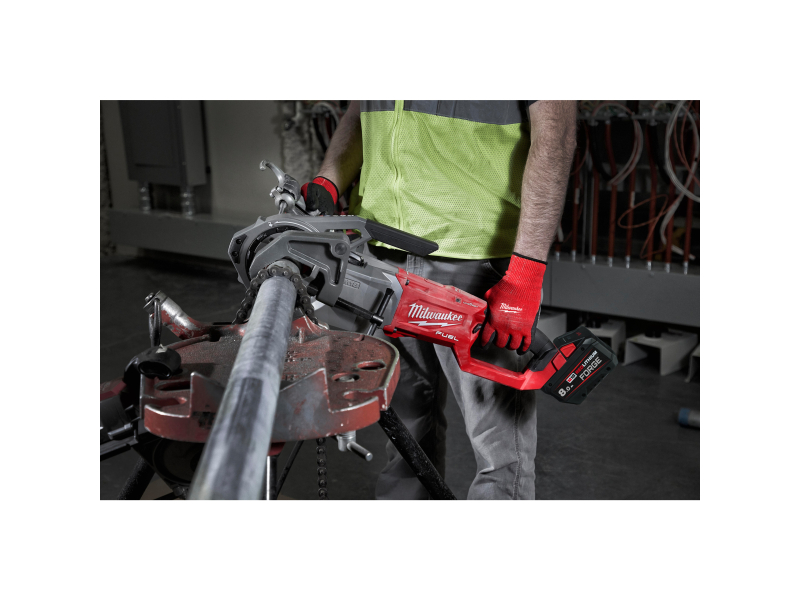 S jedním nabitím akumulátoru M18™ s kapacitou 12,0 Ah je možné provést více než 25 závitů na trubce 2″ a více než 60 závitů na trubce ½″. Boční úchop zamezuje kontaktu s otáčející se závitořeznou hlavou před a během řezání závitu.