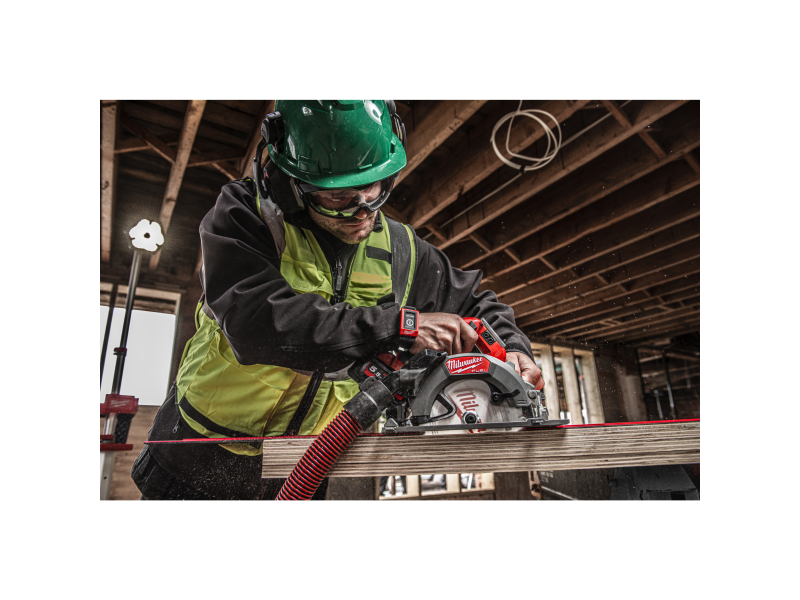 - Poskytuje výkon pro podélné řezy se stejnou rychlostí posuvu jako srovnatelná síťová okružní pila a zvládne až 400 řezů do hranolu z borovice 90 × 35 mm na jeden akumulátor 5,5 Ah HIGH OUTPUT™