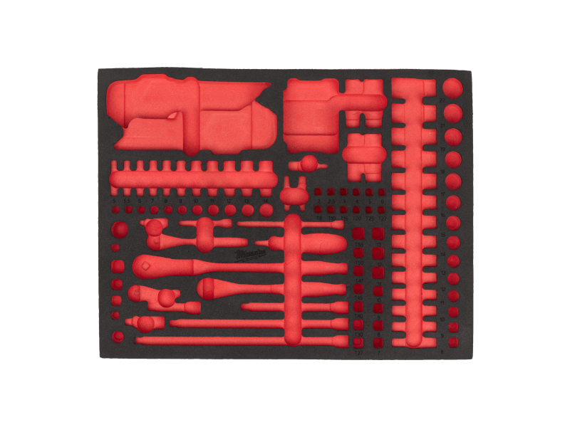 MILWAUKEE Náhradní pěnová vložka pro sadu ráčny a nástrčných hlavic ½″ v pěnové vložce - 60 ks 4932500763