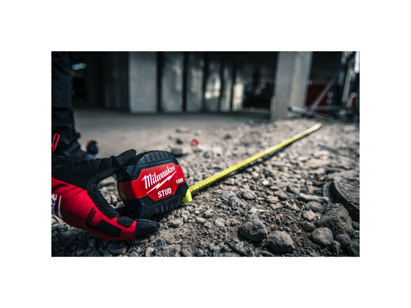 Představujeme svinovací metr MILWAUKEE STUD (Gen 3) 8 m x 33 mm, speciálně navržený pro maximální odolnost a přesnost při měření v exteriéru a na zemi. Metr je vybaven velmi čirou barvou čepele pro lepší čitelnost, což je klíčové pro přesné měření ve venkovních podmínkách. Nejodolnější čepel je opatřena nylonovým povlakem EXO 360, který poskytuje vynikající ochranu proti roztržení a oděru.
