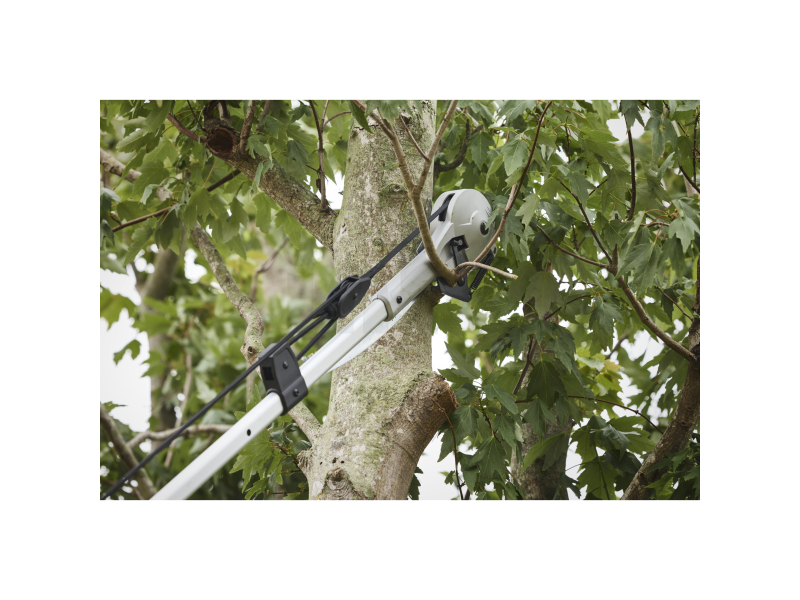 - Vysouvací až do délky 4,9 m pro bezpečné řezání vysokých větví ze země.