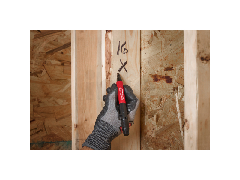- Odolný hrot značkovače píše na beton, OSB desky i hrubé povrchy na stavbě